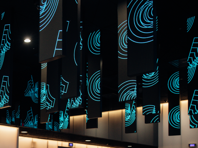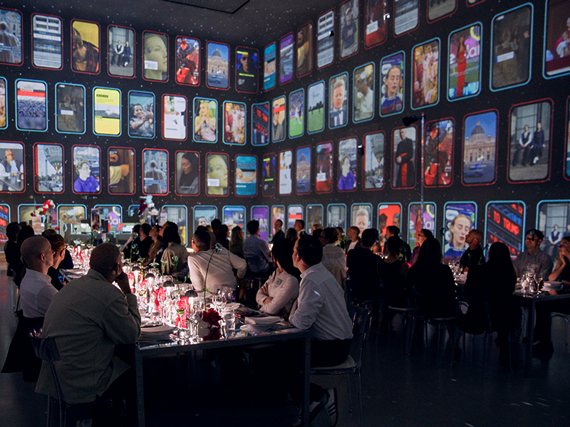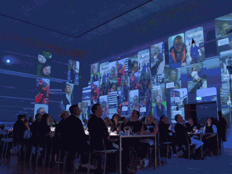 The event also required environmental branding of the guest journey through the venue, a 360° immersive opening sizzle sequence, animated case study sequences to deliver key messaging, integrated slideshow presentations and animated transitions to take the audience between environments.