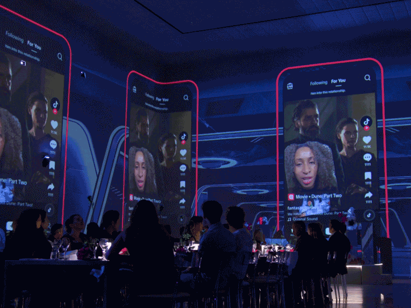 I worked with the team at London’s leading immersive venue, Frameless, and the agency Order + Chaos, providing creative direction and ideation for TikTok’s Publisher Summit event. TikTok wanted to take over Frameless’s biggest space, Gallery 3, using it’s 360 degree projection capability to immerse their VIP dinner guests in the worlds of entertainment, sport and news - alongside key messaging and platform insight.