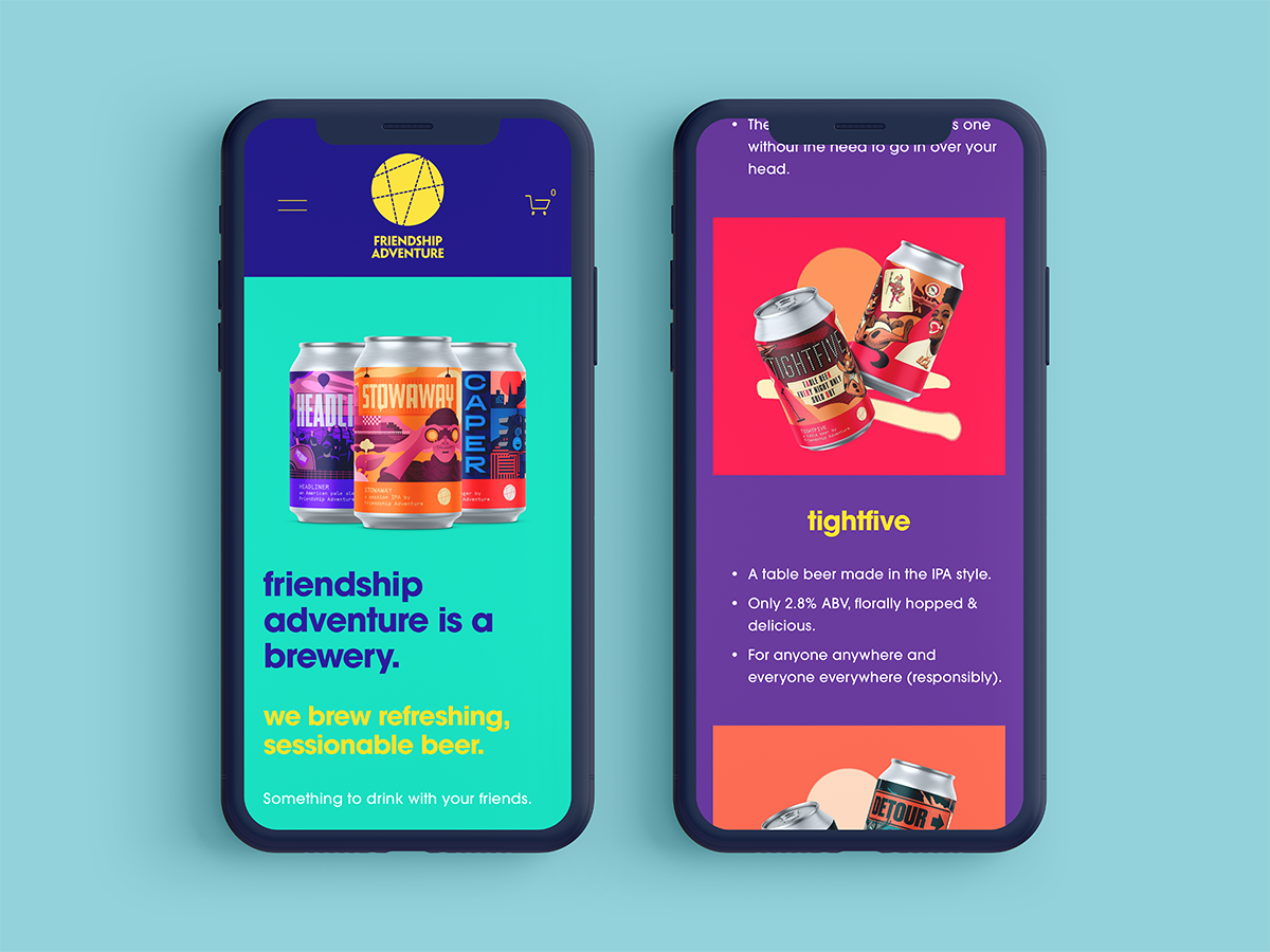 Craft beer brewery Friendship Adventure needed an identity system that could work across their product, digital and merchandise offering. The identity had to embody the spirit of the Friendship Adventure story: two friends sitting down to make a plan, over a beer. Also important was the concept of adventure and the spirit of nostalgia.