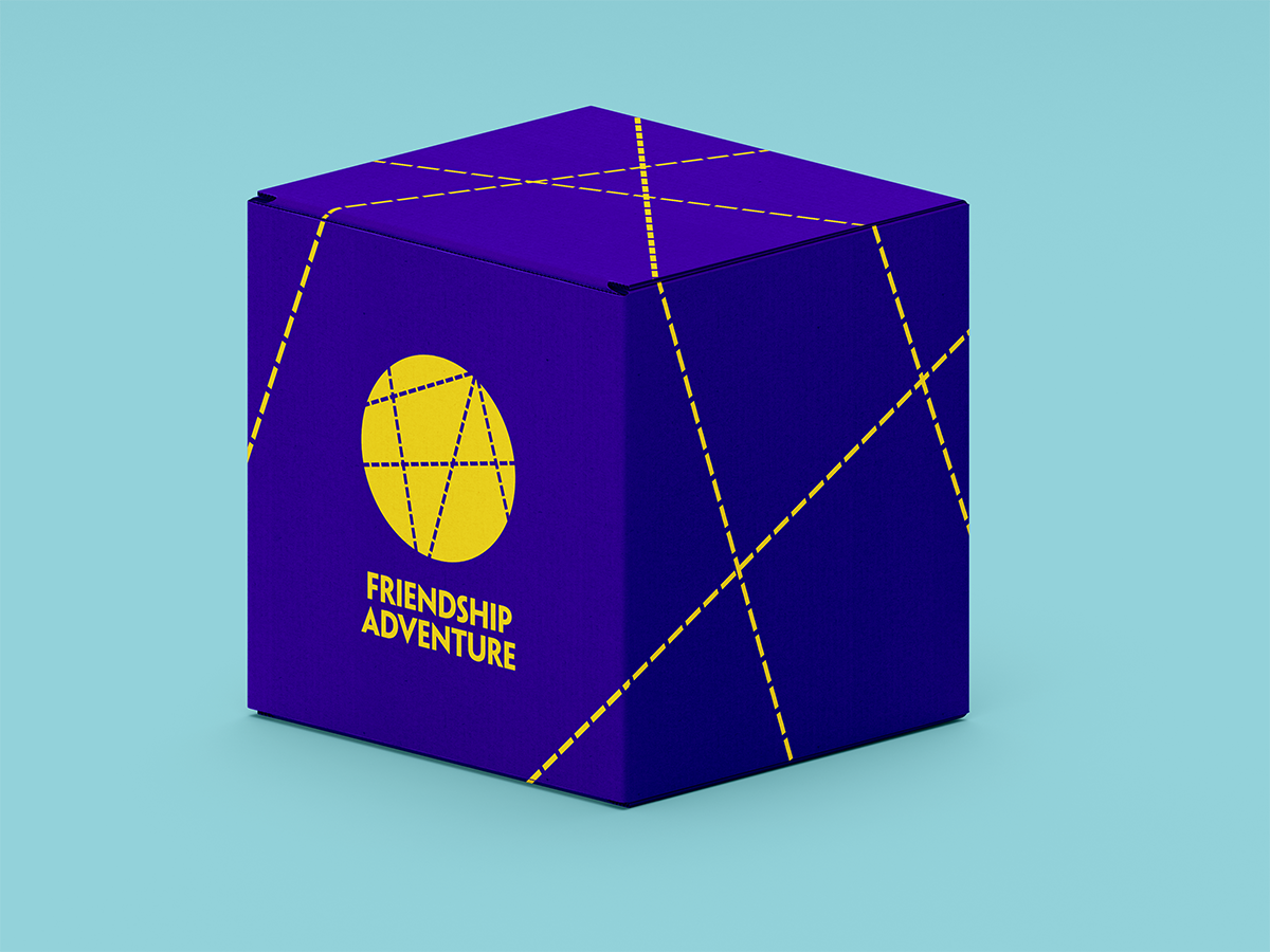 The finished identity uses the idea of ‘song lines’ or map trails criss-crossing to represent the paths of friends intersecting as they embark on their adventures. These lines are bound by a circle in the lead identity, but can be continued outside of the logo to create an almost infinite number of unique executions.